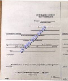 Заказать командировочное удостоверение военнослужащего в Суоярви можно и по иным причинам, например, необходимо срочно ехать на учения или в зону боевых действий. В таком случае следует обращаться к руководству с заявлением. Если человек потерял, или испортил документы, он может обратиться в нашу компанию. Купить командировочное удостоверение военнослужащего с доставкой мы предлагаем недорого.