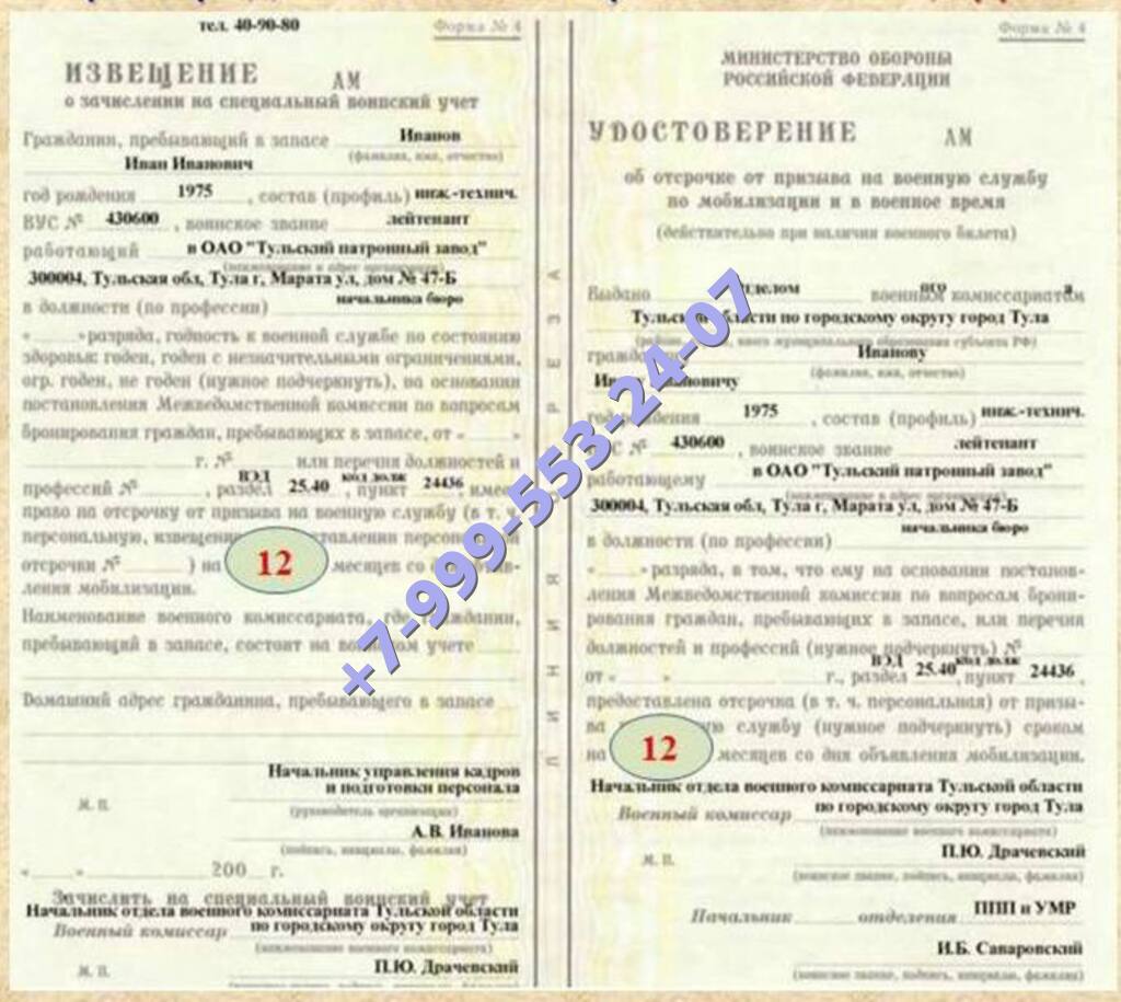 Наша компания предлагает купить в Суоярви удостоверение об отсрочке на военную службу на максимально выгодных условиях для клиента. Документы легальные, использованы бланки государственного образца.